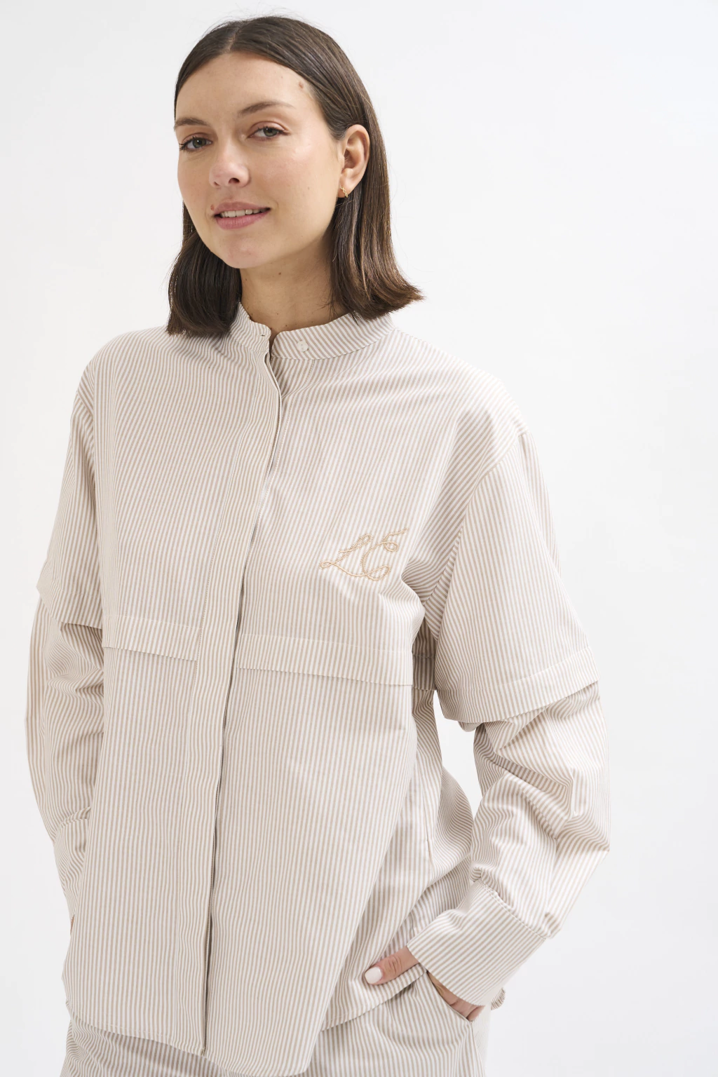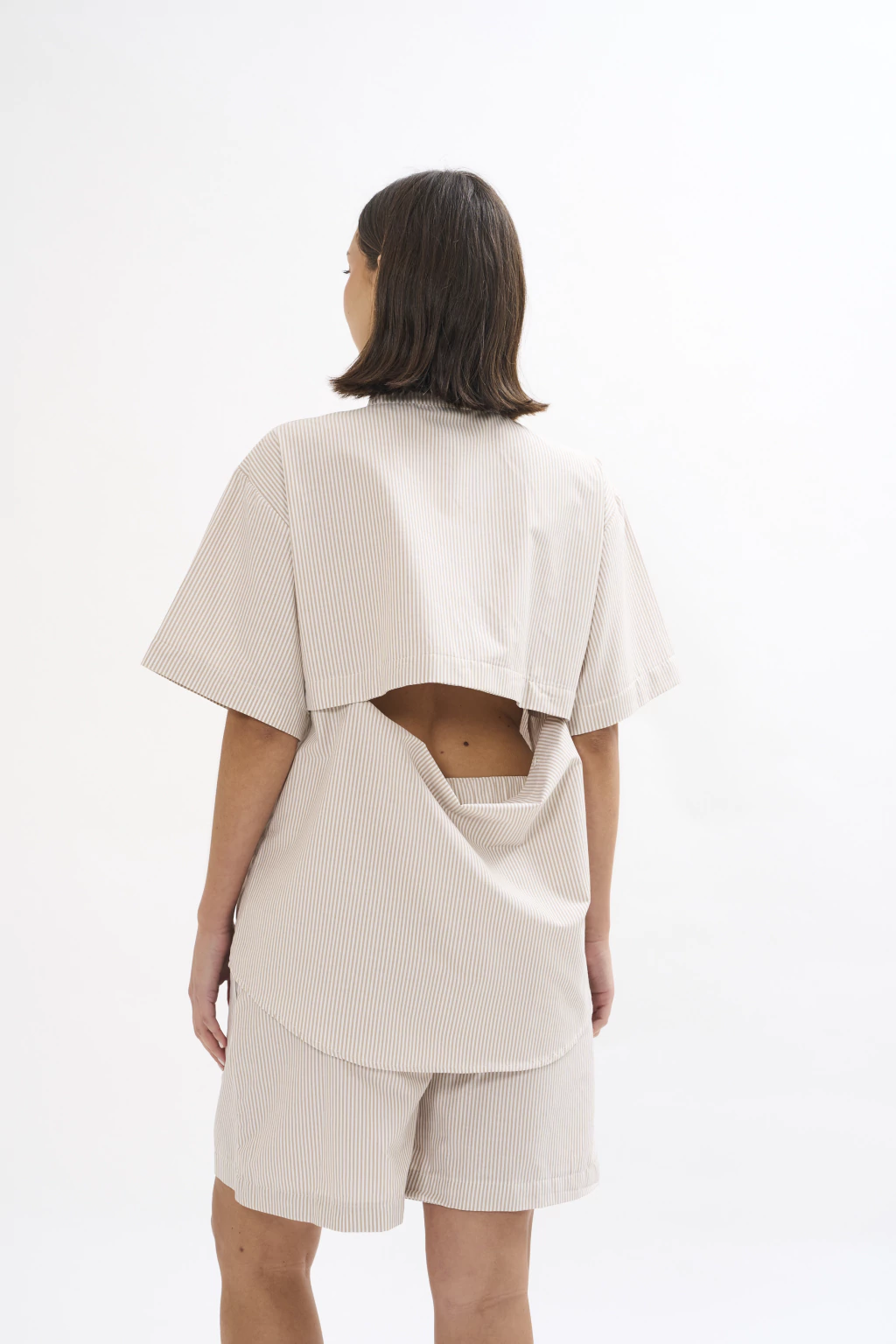 Con diseño de carácter inteligente y versátil. La Camisa Sierra te permite jugar con el estilo gracias a sus mangas desmontables, transformándola fácilmente en una camisa manga corta. En su espalda, tiene una abertura con botones adaptable. Su tejido liviano confeccionado en Poplín, 100% algodón y su estampa de rayas color nuez aportan frescura a cualquier look.