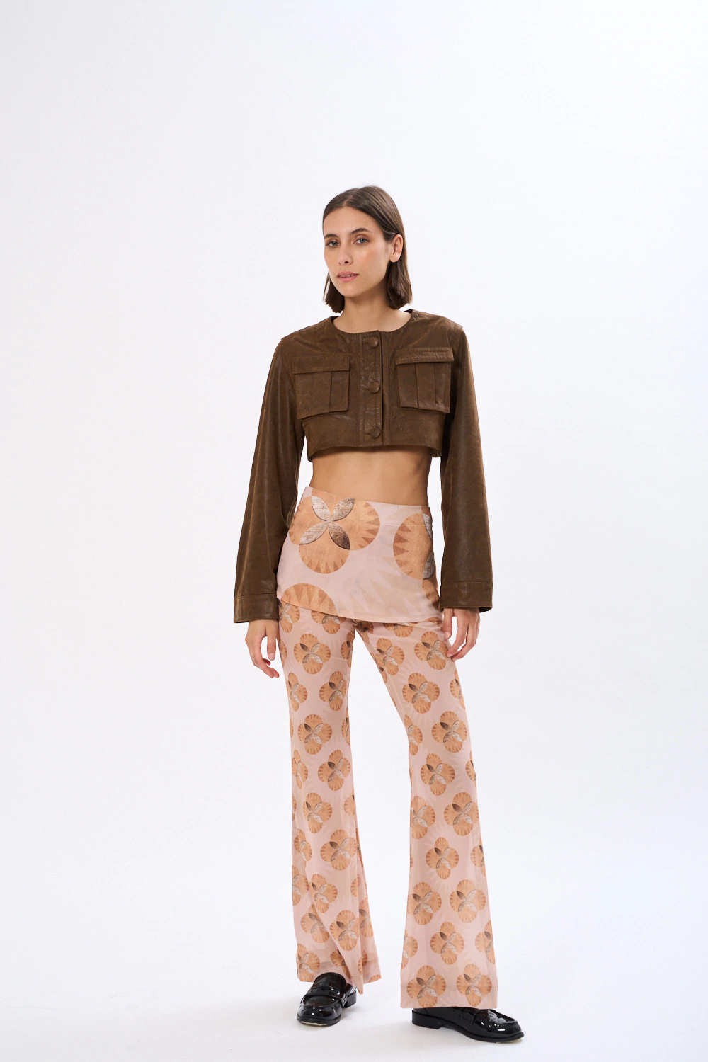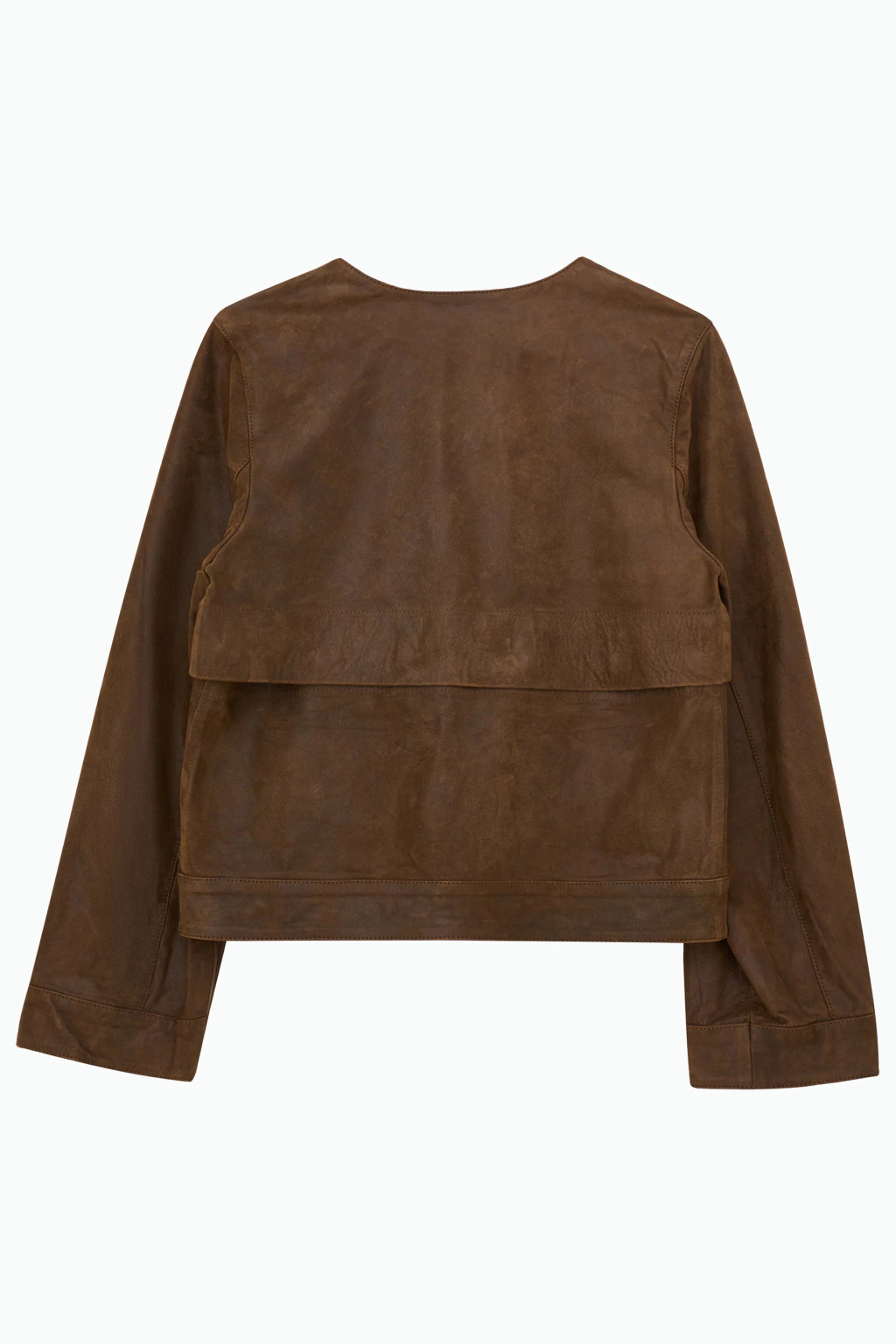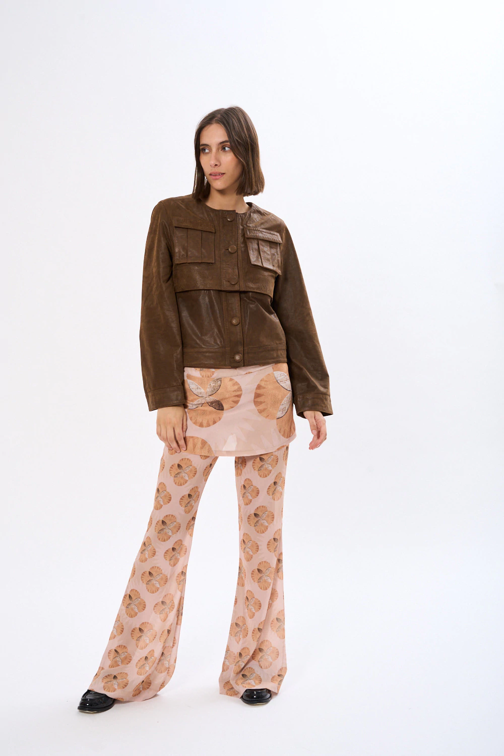 La Chaqueta Cairo está confeccionada en cuero 100% natural de primera calidad, disponible en dos versiones: cuero de vaca color choco y cuero de oveja en negro. Su diseño combina identidad y funcionalidad con un toque contemporáneo que la convierte en una pieza protagonista del guardarropa.
