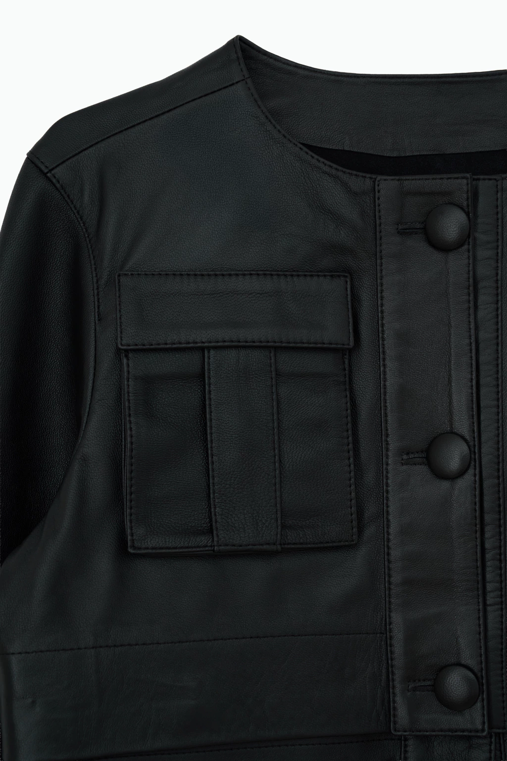 Pensada para transformarse con vos, gracias a sus botones, podés acortarla y usarla en versión cropped o llevarla larga para una propuesta más clásica. Sus bolsillos frontales con tapa, las costuras marcadas y el cuello redondo limpio aportan carácter sin perder elegancia minimalista.