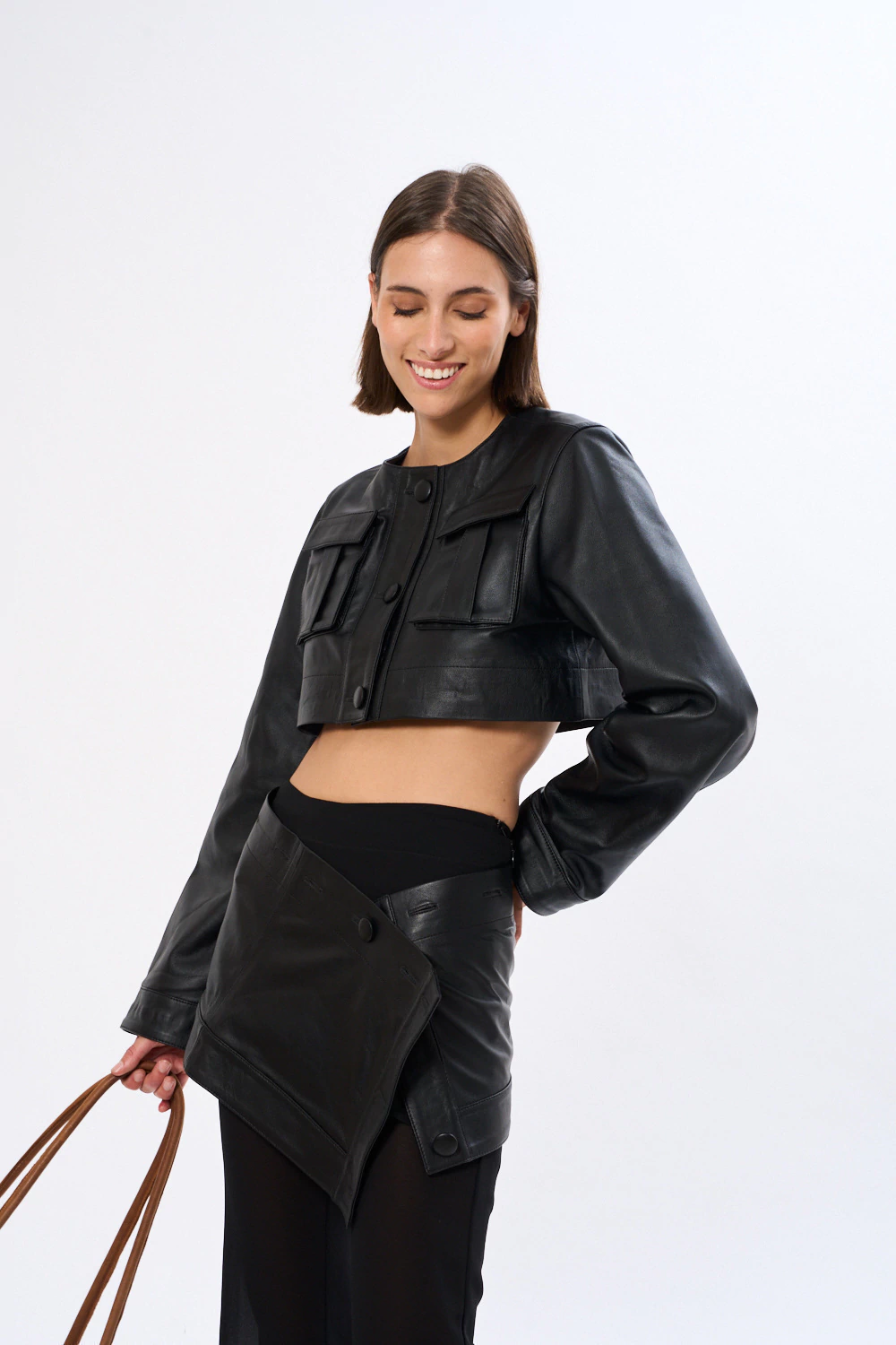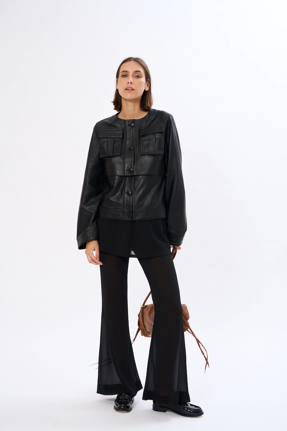 La Chaqueta Cairo está confeccionada en cuero 100% natural de primera calidad, disponible en dos versiones: cuero de vaca color choco y cuero de oveja en negro. Su diseño combina identidad y funcionalidad con un toque contemporáneo que la convierte en una pieza protagonista del guardarropa.
