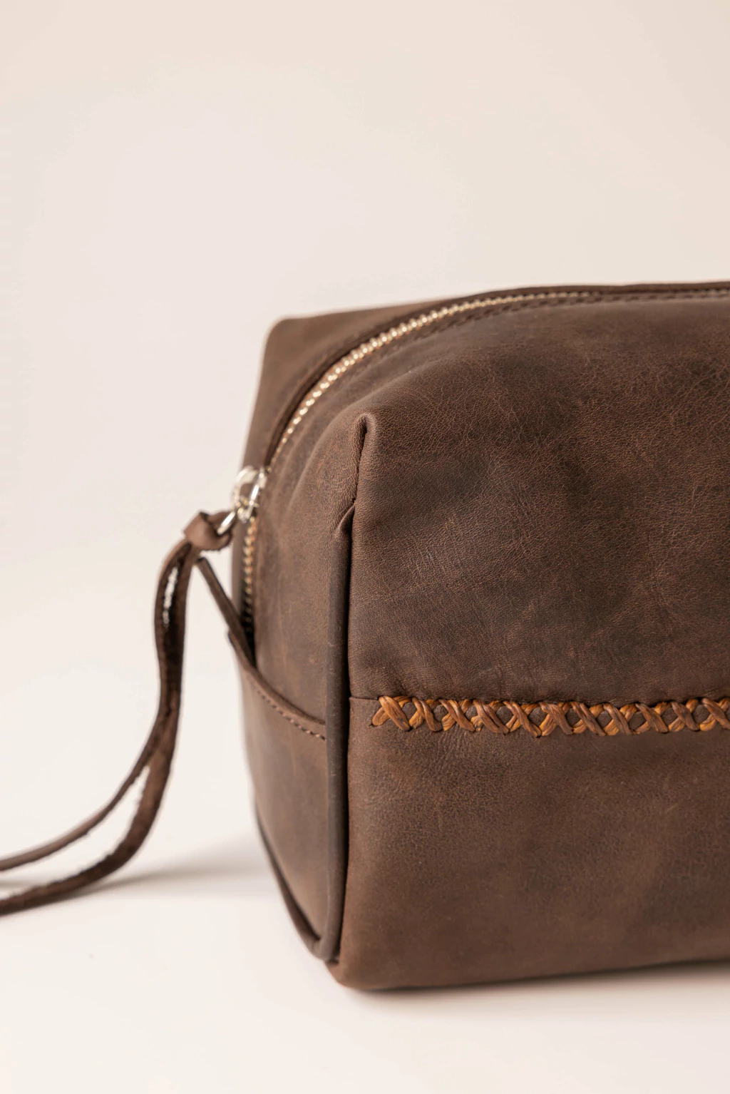 Nuestro clutch de viaje es el accesorio perfecto para aquellos que necesitan llevar sus elementos esenciales de manera organizada y con estilo. Este clutch de cuero unisex presenta trenzados en hilo encerado, lo que le brinda un toque distintivo.