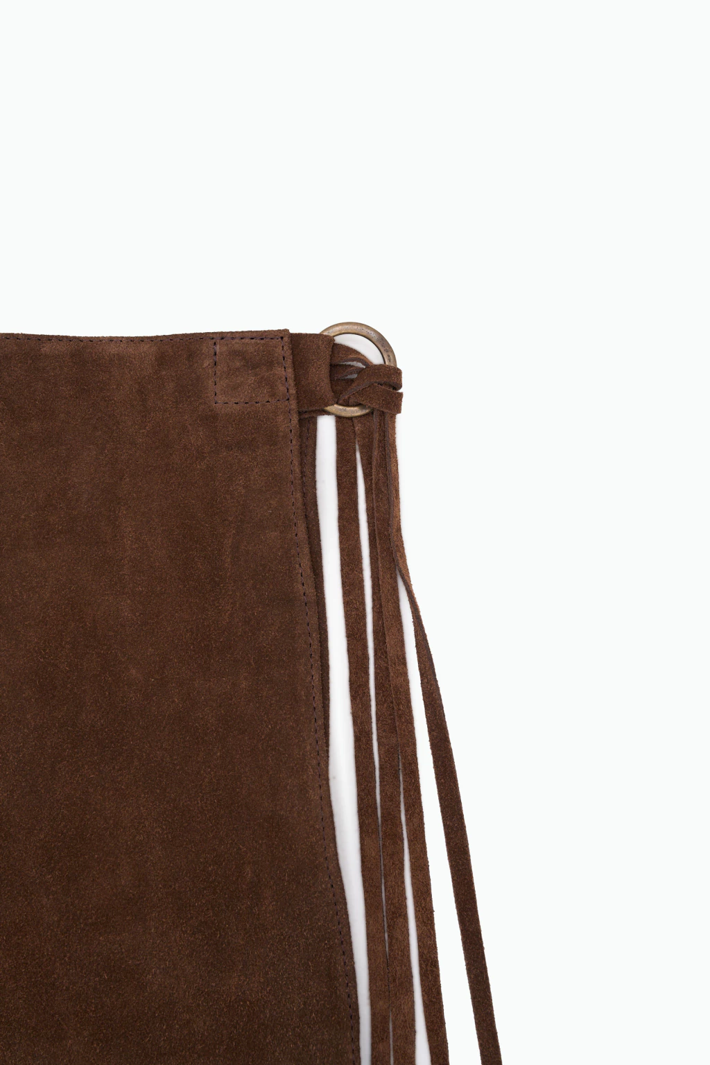 Nuestro Culero Utah, confeccionado en gamuza de alta calidad, es una pieza envolvente que se lleva sobre el pantalón —o sobre lo que quieras— para sumar carácter y estilo a tu look. Con argolla y tientos para regular, se adapta a tu cuerpo y a tu forma de llevarlo. Siempre queda bien. Siempre Bandida.