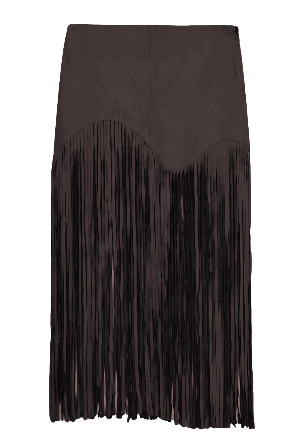 Rematada con flecos en todo su contorno, la prenda cobra vida con cada paso, creando un efecto dinámico y sofisticado. Cuenta con un cierre lateral metálico que asegura un calce perfecto y un acabado prolijo. Diseñada para combinar con el Top Silvestre, forma un conjunto original y distintivo, ideal para quienes buscan piezas únicas con identidad artesanal.
