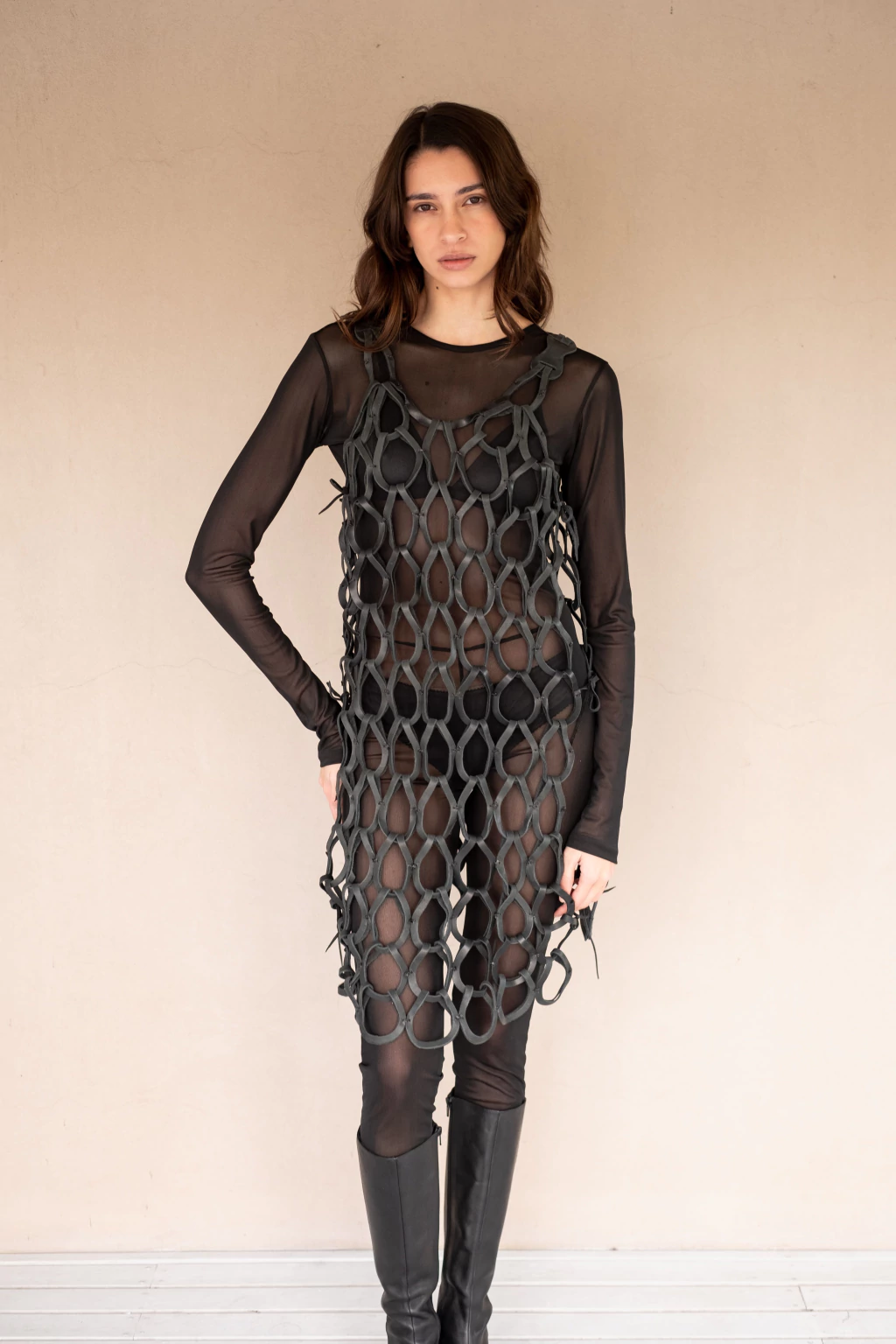 El Mono mesh Raffaella es la elección perfecta para quienes quieran destacar otorgándole una capa más a su outfit con la superposición de prendas, o solo para un look icónico de noche.