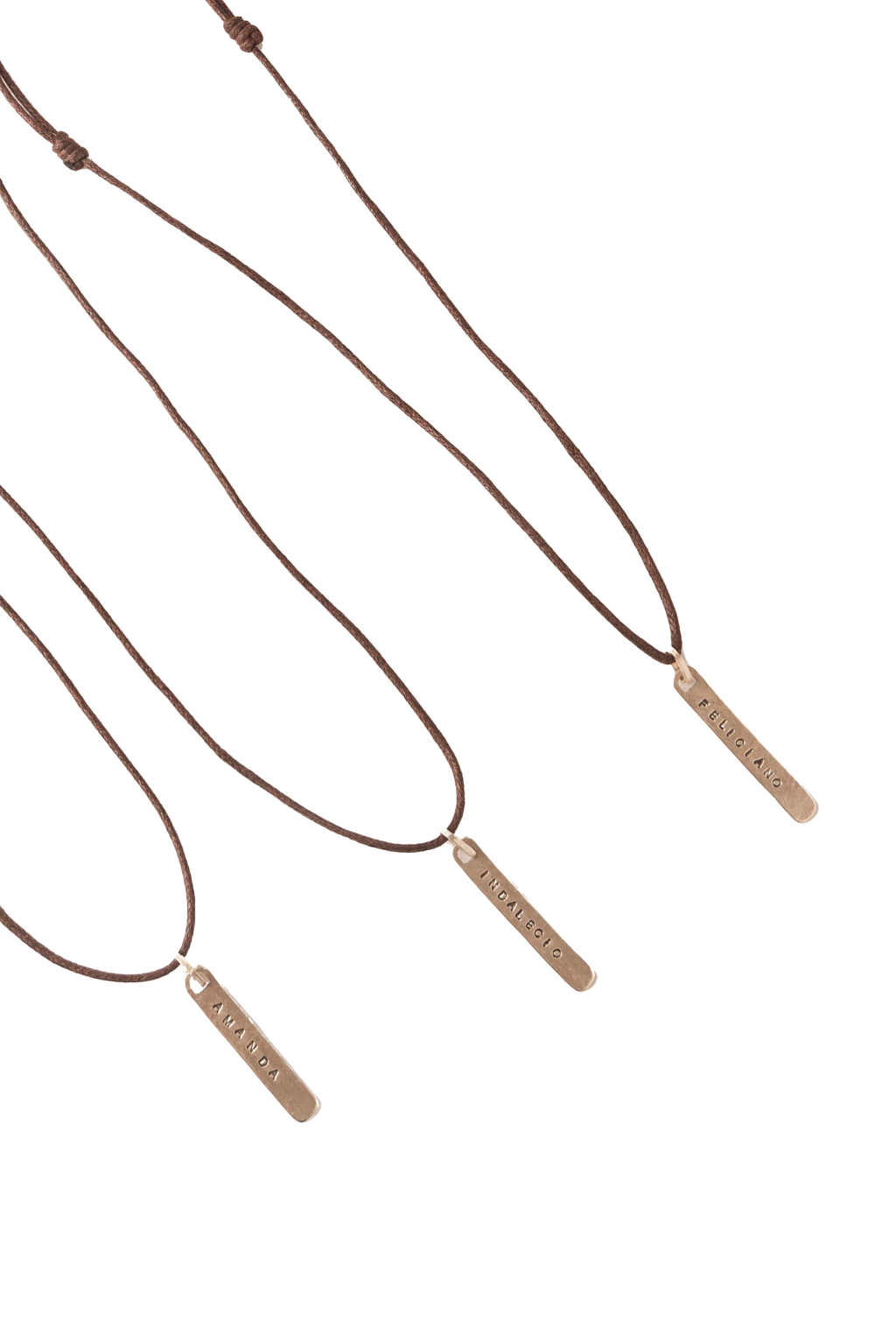 Cada pieza se entrega con un cordón color chocolate regulable, y también podés usarla con tu propia cadenita.